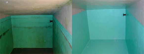 S časom se v rezervoarjih pitne vode akumulirajo obloge, ki povzročijo bakterijsko kontaminacijo vode in bistveno povečajo korozijo. Redno čiščenje deloma omili težave, vendar je uspeh kratkotrajen zaradi nepopolne odstranitve oblog. Praviloma posledično sledi draga sanacija s peskanjem in ponovnim barvanjem rezervoarjev.